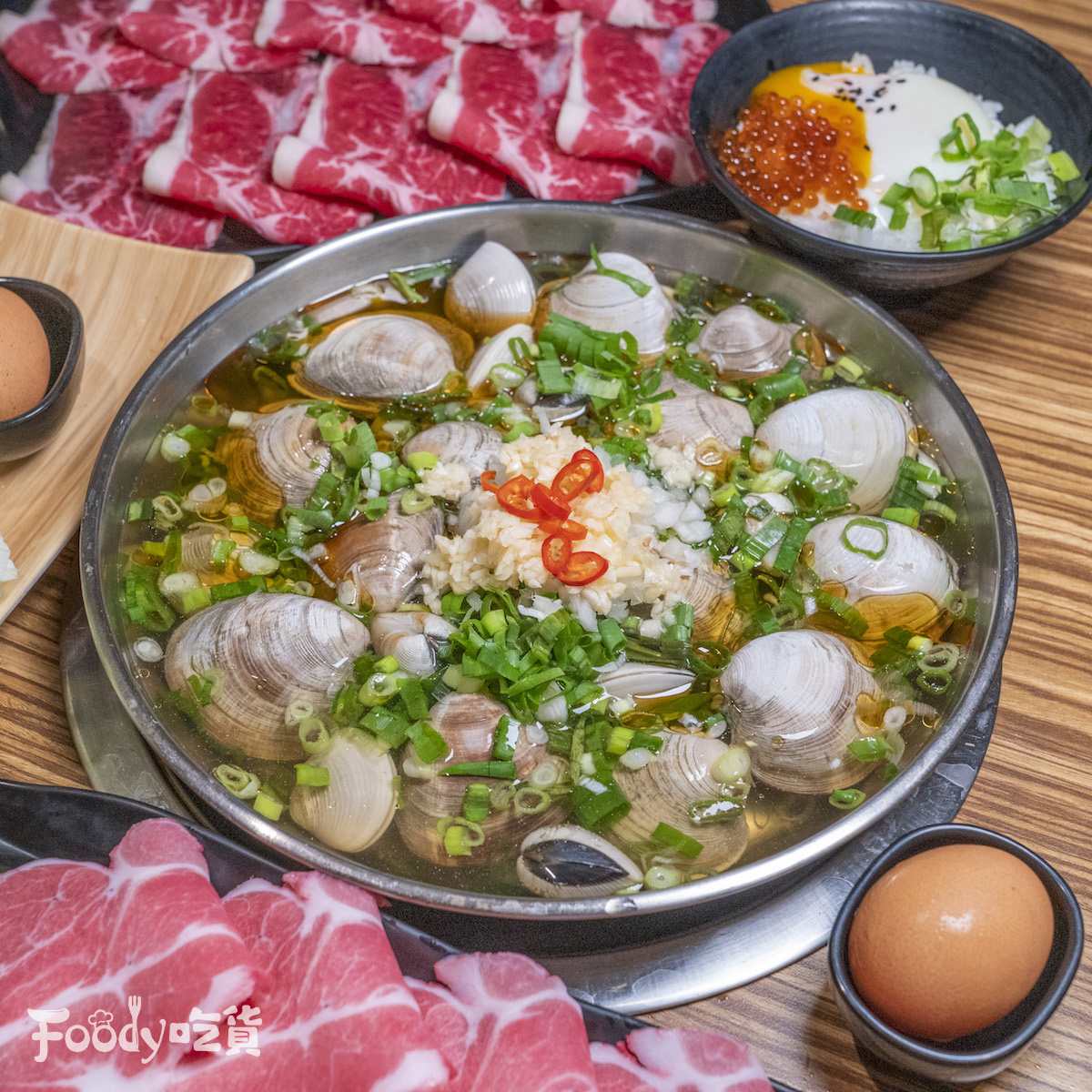 ▼除了龍蝦跟鮑魚外,愛吃蛤的也別錯過「雙人爆蛤鍋」套餐:整整兩斤的牛奶貝還不夠,鍋裡還放了台灣文蛤一起,大小蛤仔一起熬出超鮮甜的湯頭;吃完蛤之後加入白飯、蔥花、蒜、肉片跟蛋煮成雜炊,更是美味無比~