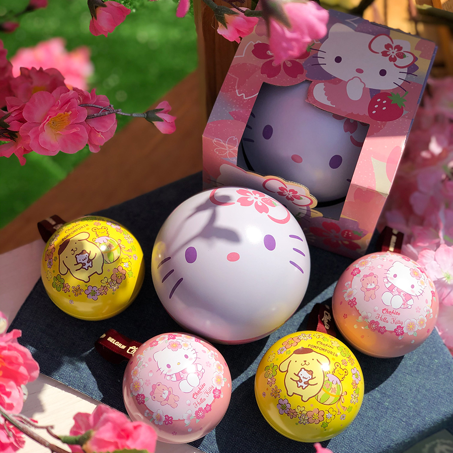 ▼CVS獨家上市,Hello Kitty+布丁狗設計浪漫櫻花季限定圓形精巧鐵盒義大利巧克力口感均勻細緻滑順。