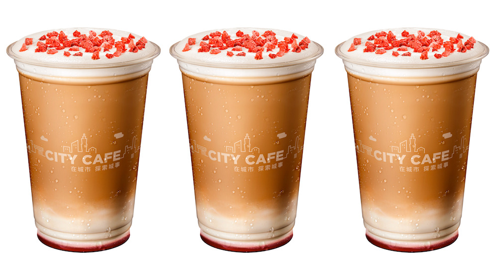 ▼「櫻花風美苺拿鐵」(65元/大杯冰飲;60元/中杯熱飲),使用美國品種草莓-甜心查理及全明星品種,此品種果實肉質顏色飽滿,甜度香甜,製作成草莓濃縮原汁,融合CITY CAFE拿鐵,並撒上草莓果乾,表面呈現櫻花花瓣視覺感,是一杯少女心滿滿的網美咖啡!