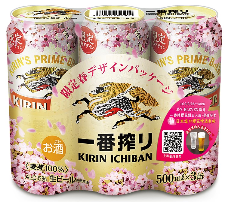 ▼「麒麟一番搾500CC罐3入」(售價180元)麒麟一番搾不用介紹大家都知道他的好,這次換上櫻花包裝滿滿少女感!另外從2月26日至3月24日超值特價只要153元,每買一組還可以三家活動抽限量櫻花杯以及富士山杯!