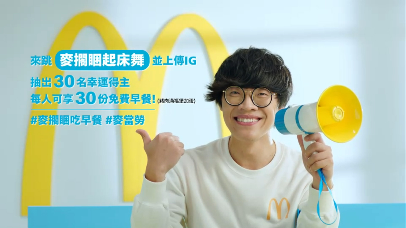 ▼台灣麥當勞和「早餐小隊長」盧廣仲聯手,精心規劃推出「麥擱睏起床舞」,即日起至3月2日止,消費者凡於Instagram模仿「麥擱睏起床舞」並#hashtag「麥當勞」與「麥擱睏吃早餐」,麥當勞將抽出30位幸運兒,每位可各獲得30天份、麥當勞最經典的「豬肉滿福堡加蛋」,相當於免費吃一個月麥當勞早餐!