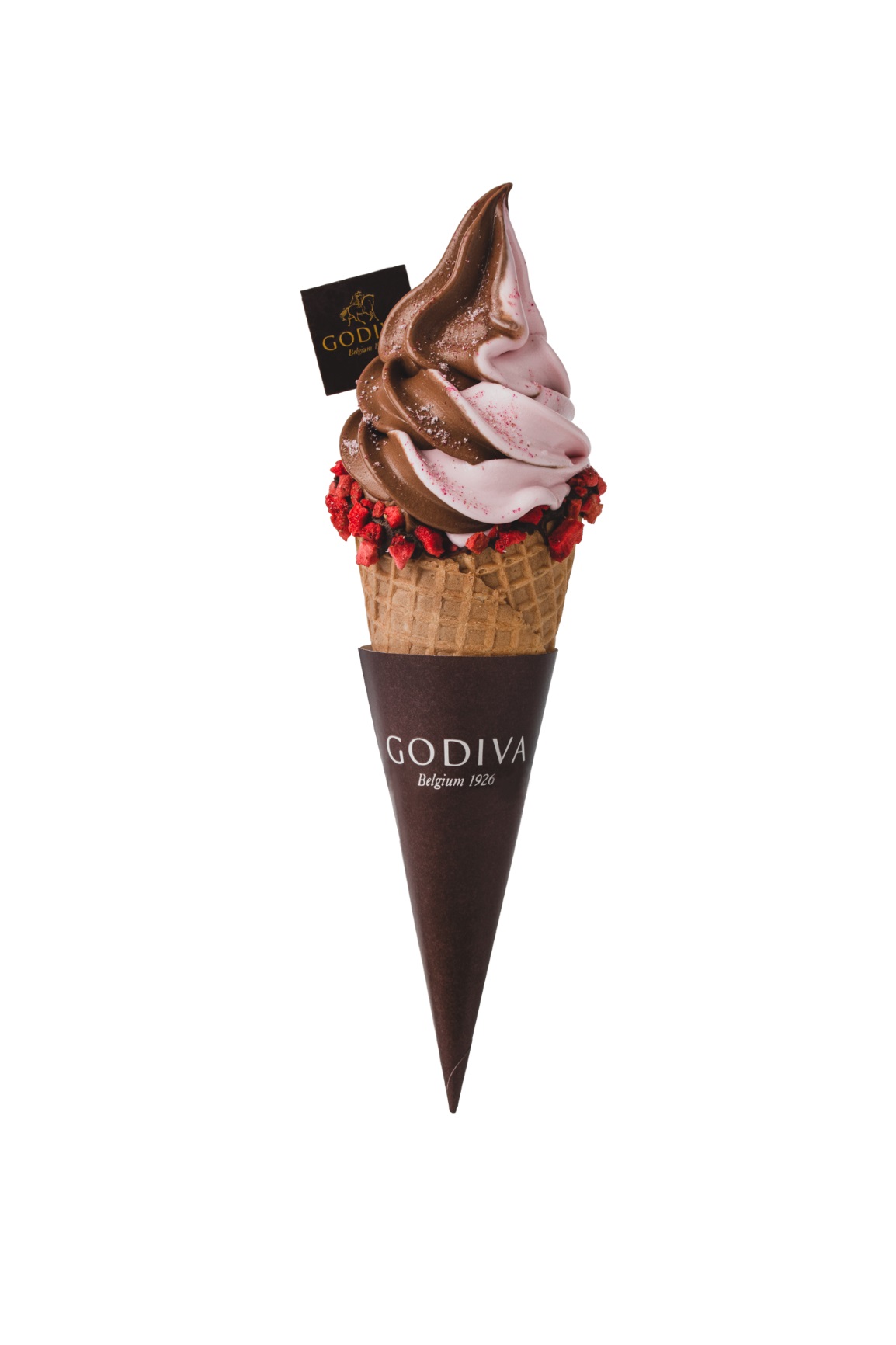 ▼以GODIVA香草白巧克力為基底製成的草莓霜淇淋,外觀猶如櫻花般粉嫩動人,品嚐起來不僅有草莓的酸甜滋味,更結合GODIVA黑巧克力的香醇濃郁,甜筒邊緣更沾上乾燥草莓顆粒,再灑上帶有莓果酸香的草莓粉,讓你一次嚐到多重草莓風味,加上撲鼻而來的草莓香氣,全面觸動嗅覺與味覺的感官享受!