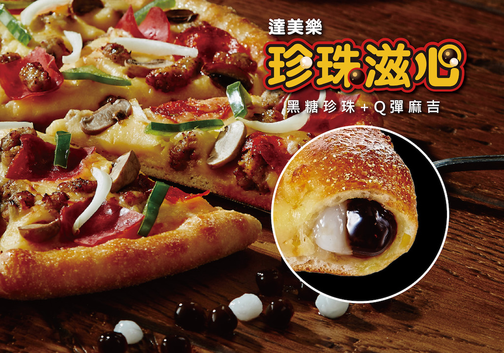 ▼達美樂「珍珠滋心披薩」嚴選台灣黑糖珍珠及上等白玉麻吉,一個披薩2種美味享受,滿滿餡料濃郁起司再加黑白珍珠綿密香甜,絕對值得一試!