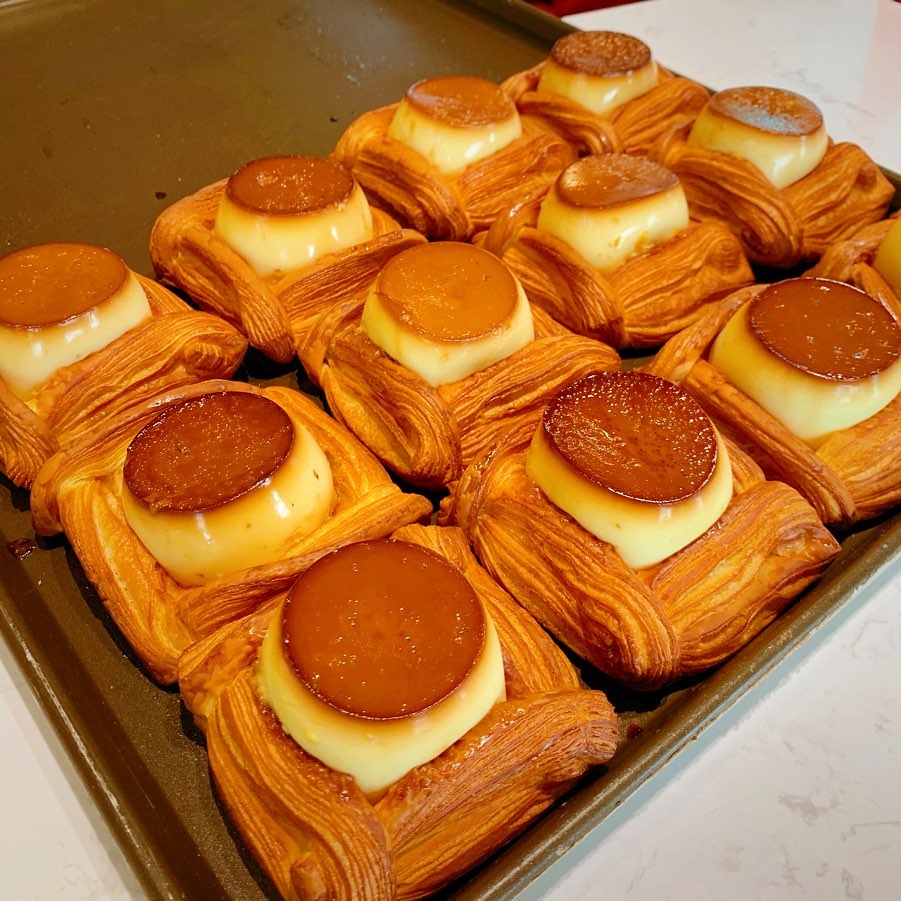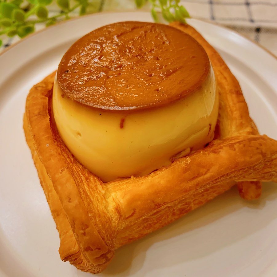 ▼這款「丹麥烤布丁」的麵包選用日本鳥越麵粉以及法國發酵奶油製作,吃起來非常酥脆又充滿香氣,讓人忍不住一口接一口!
