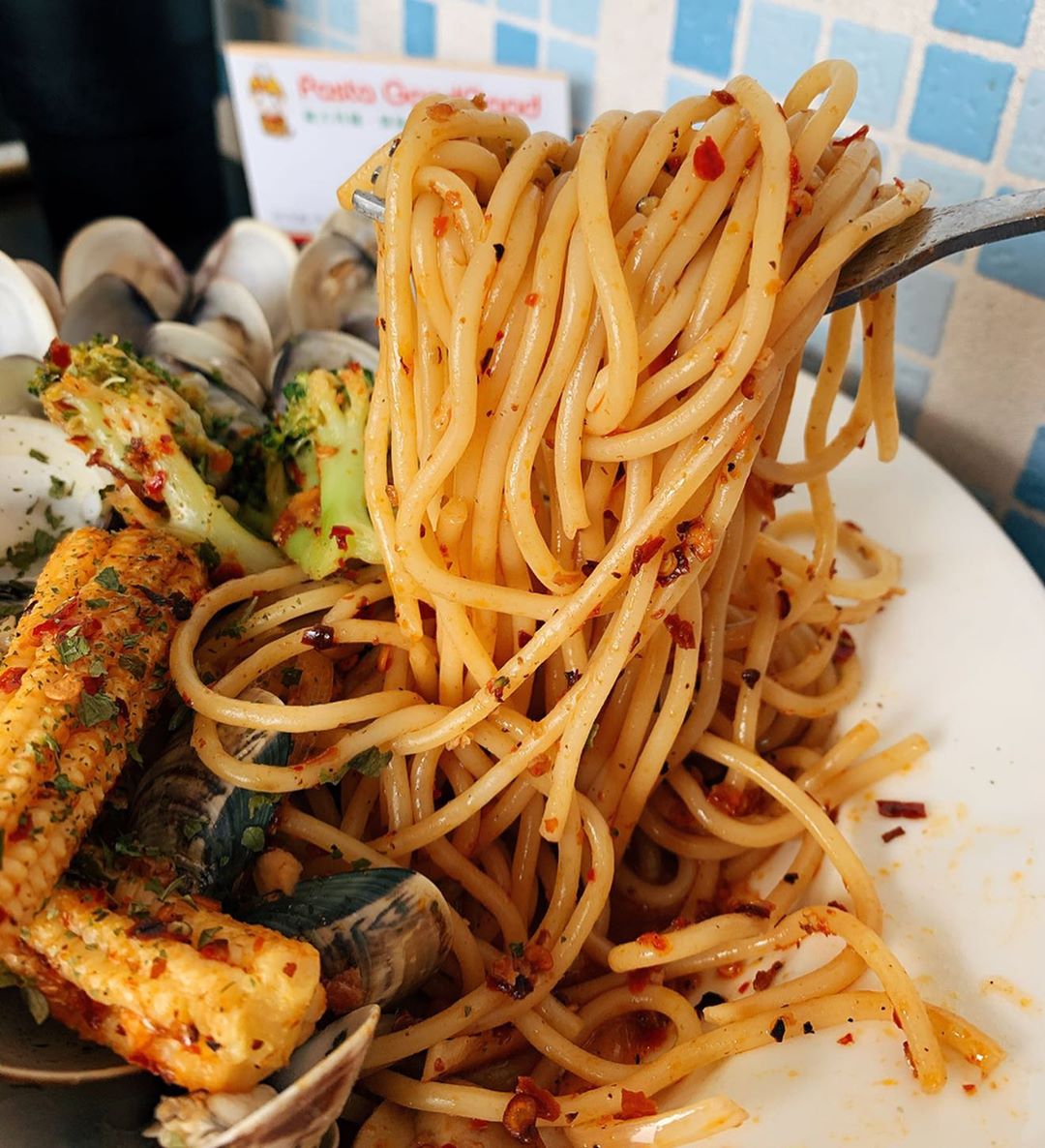 ▼不過這家店可不是只有一般義大利麵,最有名的招牌是這擺滿了蛤仔的義大利麵,看看這盤浮誇到快滿出來的蛤蜊,根本看不到麵了啊老闆!
