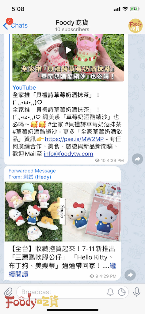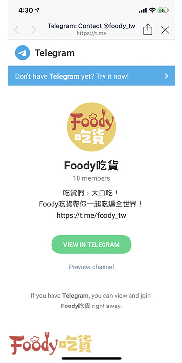 ▼接下來大家可以利用Telegram增加聯絡人,不管是貼圖還是上面的功能都可以使用,而且完全免費!大家在探索Telegram的同時,還有一件非常重要的事,那就是加入「Foody吃貨」TG頻道啦!