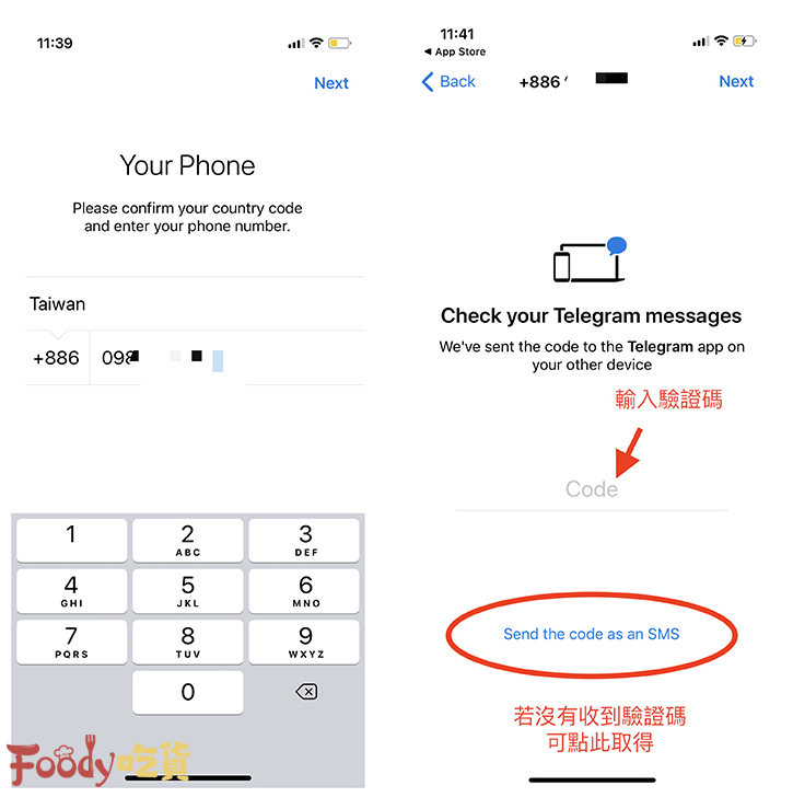 ▼點開App之後,點選「Start Messaging」,輸入手機號碼之後會收到一組驗證碼,若沒有收到的話可點下方藍色小字「Send the code as an SMS」。