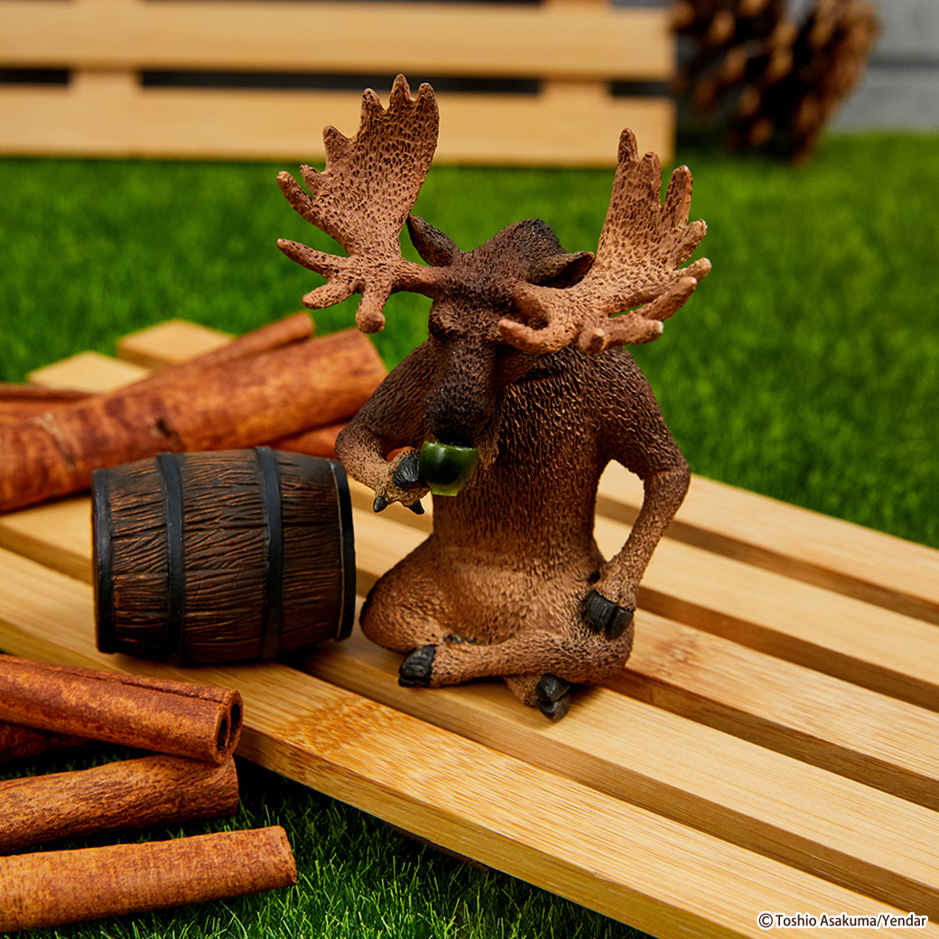 ▼別看麋鹿慢慢地乾著清酒,他可是千杯不倒的高手喔!盤著腿思考著什麼,就知道誰是這個局的老大了!