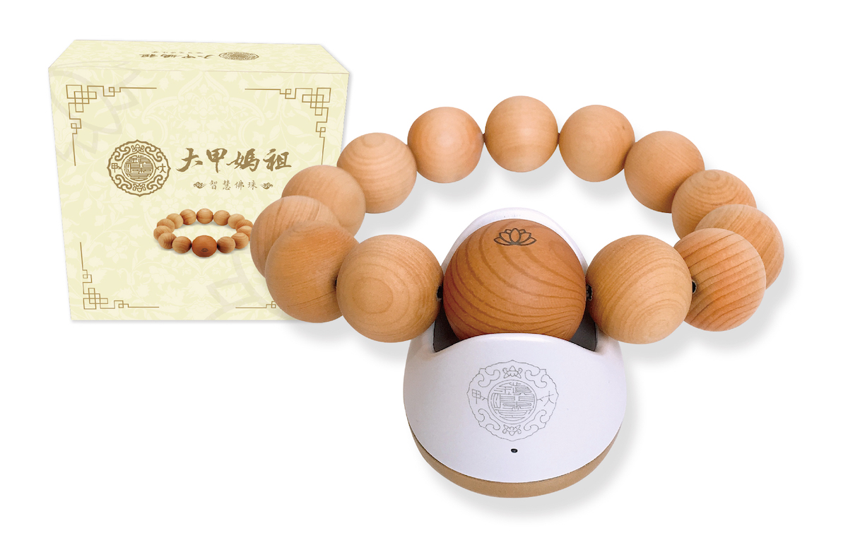 ▼另一款超狂的商品是「大甲媽祖智慧佛珠」,不但每一串都經過鎮瀾宮送經、過爐、祈福等大甲媽加持儀式,主珠內部嵌入無線充電晶片,能設定、紀錄念佛時轉動佛珠的次數,還可連接藍牙喇叭選擇內建200首以上的心靈音樂,更有鬧鐘、健走/體重管理、睡眠監視器等超實用功能,現在連佛珠都要這麼潮就對了XD?