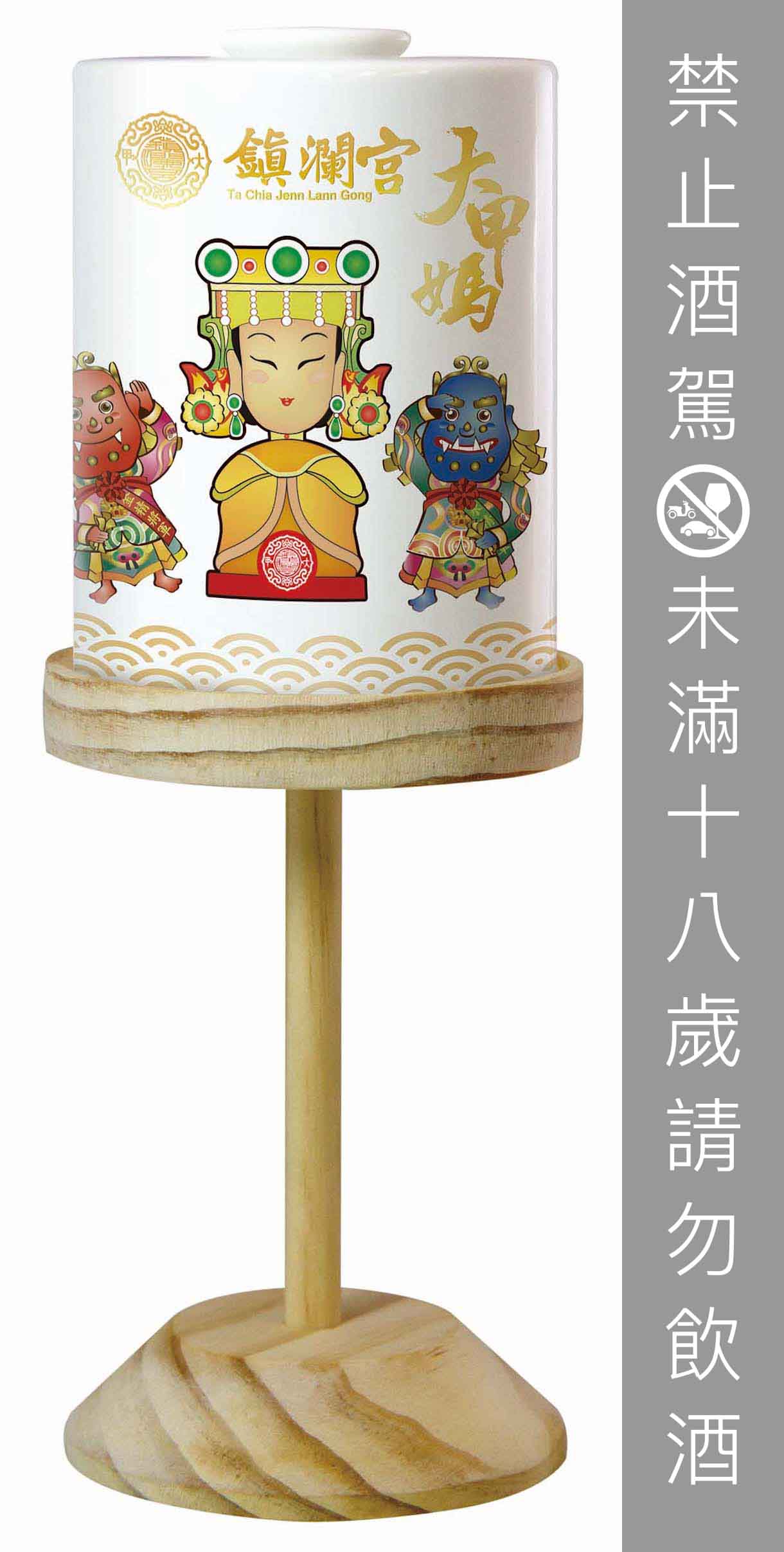▼除了針織做工精美的涼傘部分,裡面的Q版媽祖瓷瓶也很勾追,嚴選三年甕酒58%高粱,搭配古樸典雅的原木底座,在家裡放一支這款酒鎮宅,相信什麼亂七八糟的東西都不敢來啦!