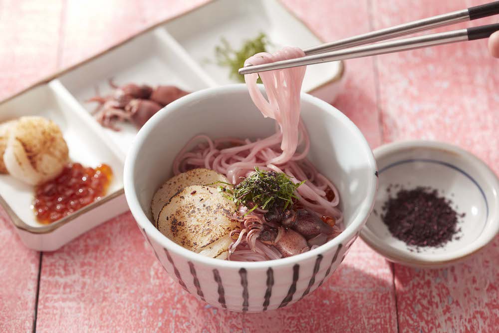 ▼逸品推出螢烏賊梅素麵,為粉色春季饗宴畫下完美的句點,精選春櫻般的粉色梅素麵,以梅子手工製成,柔嫩細緻口感,蘊含著梅果的香甜芬芳。