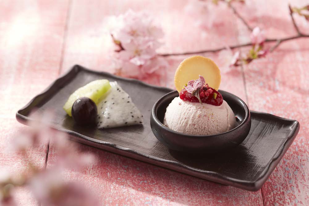 ▼主餐嚴選三種頂級肉品 – A5日本和牛、西班牙Bellota伊比利豬、雲林黑羽土雞,經櫻花鰹魚湯頭輕涮的鮮嫩肉質,蘸取主廚精心調製、妝點鹽漬櫻花的櫻花豆腐醬,入口溫潤圓滑,飄逸著櫻花清雅香氣,亦有羊肚菌菇奶油醬、椪醋醬、瀨戶內海產藻鹽沾取享用。更特別手工自製櫻花蝦丸,將東港櫻花蝦的濃郁香氣與蝦仁的鮮甜,巧妙融合日本魚漿的細緻軟嫩,一口咬下外脆內嫩、香氣四溢。