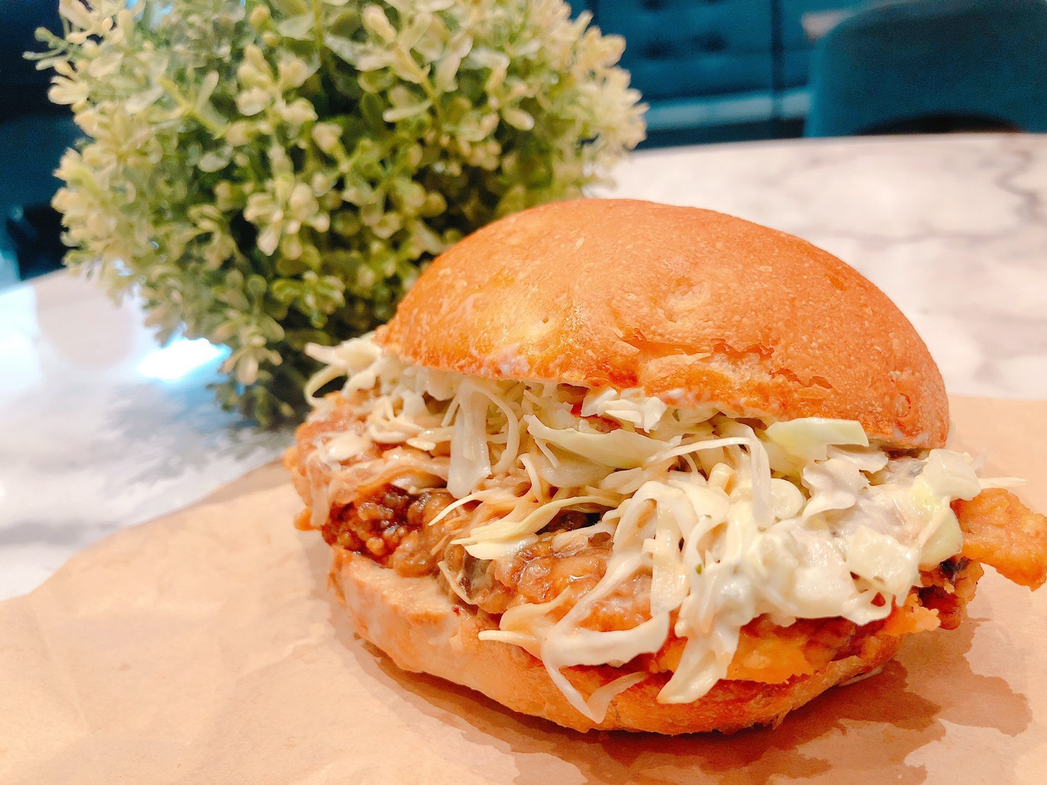 ▼新品佛卡夏選用帶有橄欖油香氣的義大利風味佛卡夏麵包,夾入份量感十足的茴香雞腿肉與大量高麗菜絲,搭配淋上陳醋醬、香濃塔塔醬,酸中帶甜多種口感讓人一吃就著迷。