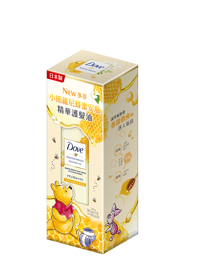 ▼可愛的維尼來啦!多芬將推出史上最療癒*新品-蜂蜜安瓶精華護髮油,添加西班牙蜂蜜萃取+100%天然來源馬魯拉油,有效滋潤受損髮,蘊含微小滲透髮絲修護因子,質地輕盈快速好吸收,同時融合杏桃花果香與蜂蜜香調,使用後秀髮散發輕柔香甜氣息,在保養頭髮時有最呆萌小熊維尼的陪伴真的太療癒!