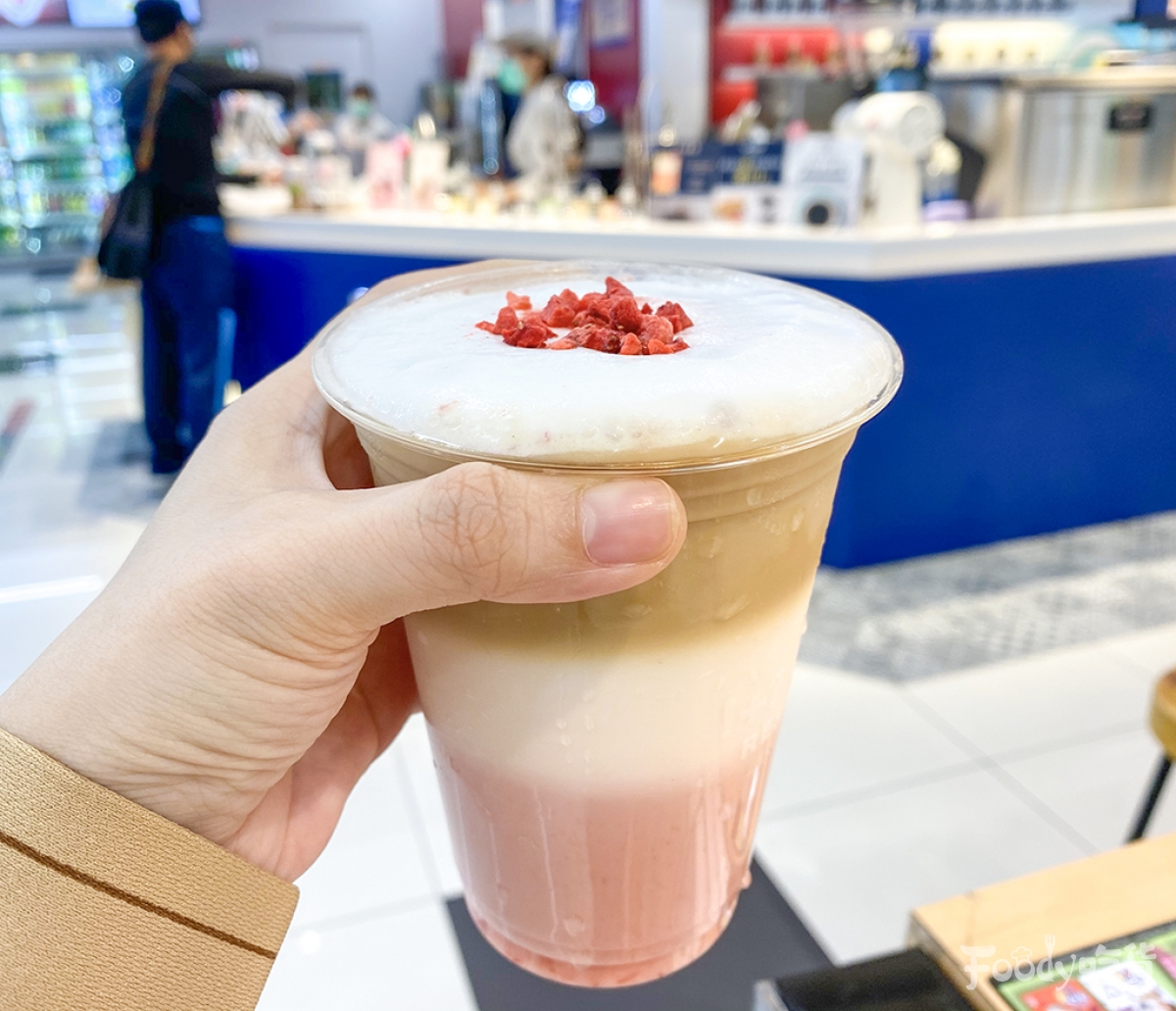 ▼除了草莓咖啡奶霜之外,另外還有「冰草莓果粒歐蕾」可以選擇,微酸微甜的草莓奶霜,每一口都可以喝到草莓香甜滋味,口味好喝顏值又高,少女們還不買一杯回去嗎~