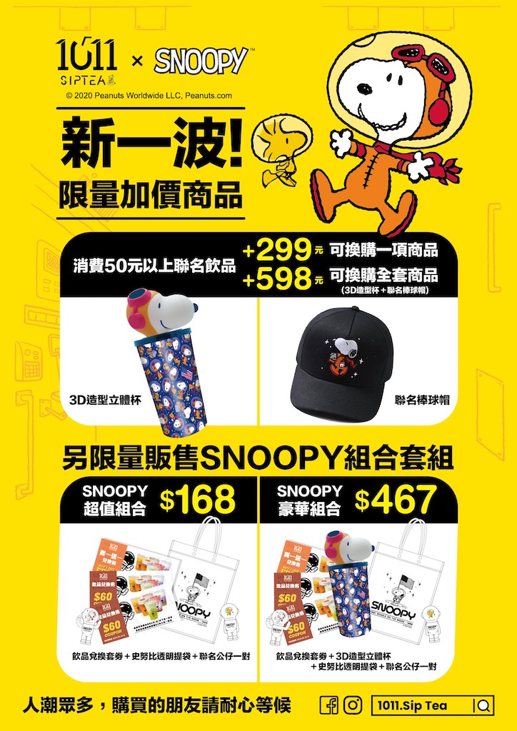 2020年03月24日各位史努比粉絲們一定對「1011 SIPTEA」手搖品牌不陌生吧!沒錯就是推出可愛的史努比造立體造型杯的超強手搖店,從最一開始推出「史努比棉花糖特調」之後,後續又推出史努比立體造型杯和提袋,這次「1011 SIPTEA」再度推出史努比聯名商品,不管是全新的3D造型立體杯,還是聯名棒球帽,每一個都可愛到像立刻帶回家收藏!