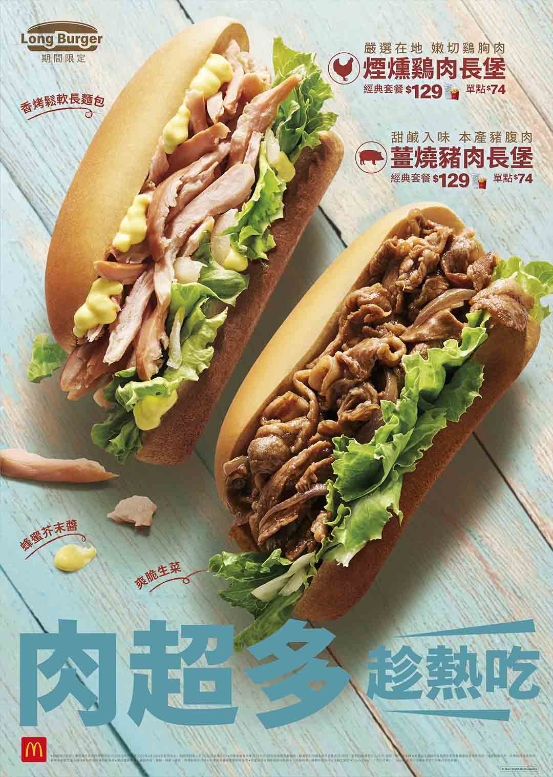 NEW!! 麥當勞「長堡系列」全新「煙燻鷄肉長堡」、「薑燒豬肉長堡」: