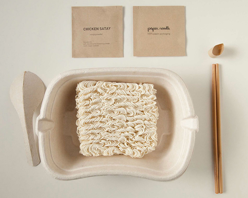 ▼調查顯示,2018年全球共賣出1030億包泡麵。這些泡麵產生的塑膠廢物會給環境帶來巨大的負擔。Emily設計的泡麵包裝「paper noodle」讓人非常驚喜,從盒子到湯匙全都是用可以生物降解、回收的紙漿製作的。