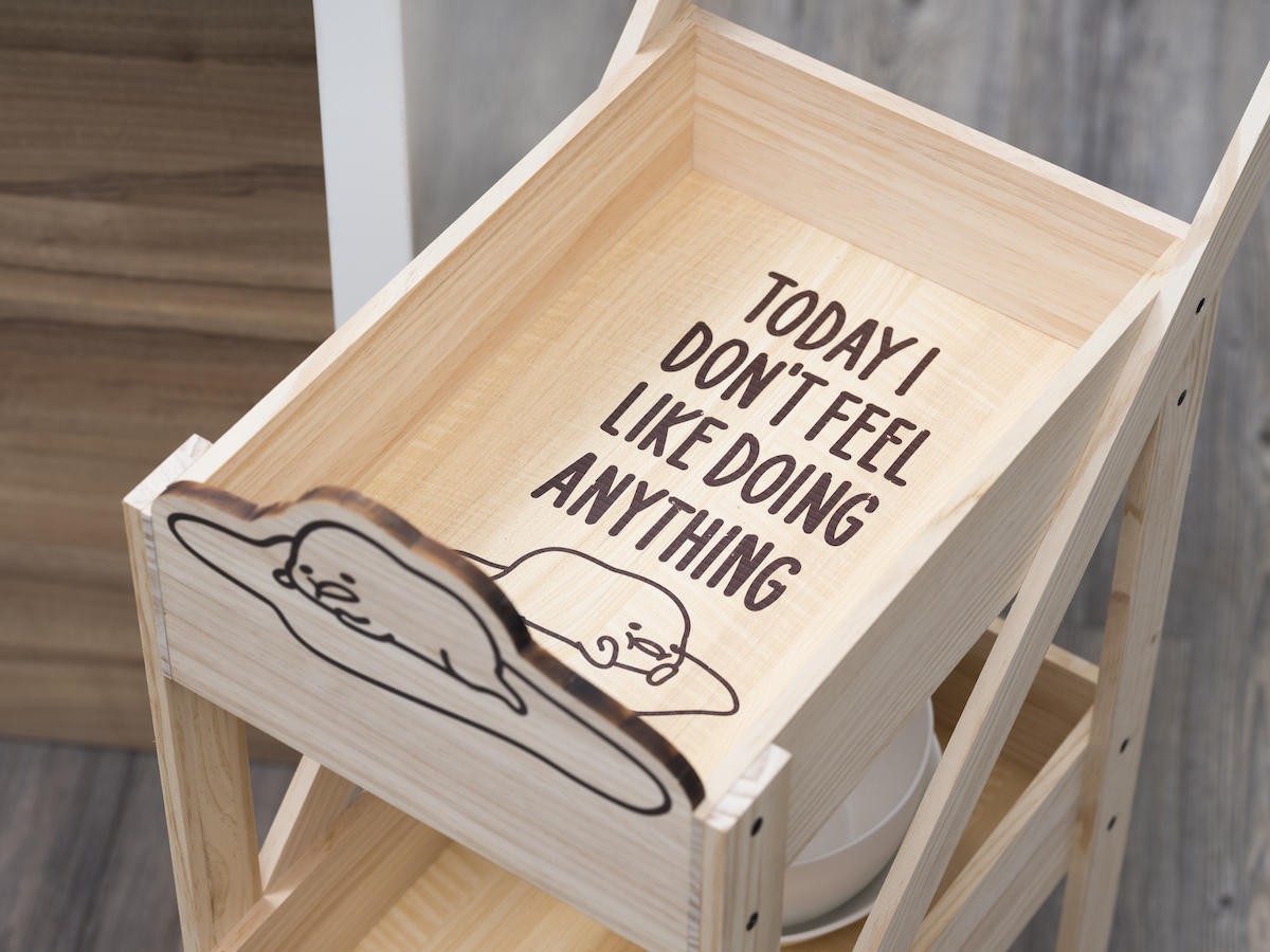 ▼HELLO KITTY松木折合桌、蛋黃哥松木手推車等居家收納工具,不但看起來質感十足,上面的Kitty與蛋黃哥也可愛到不行,不管是用來收納書籍、玩具,或是甚至廚房瓶罐都適用,居家空間瞬間變得萌萌der~