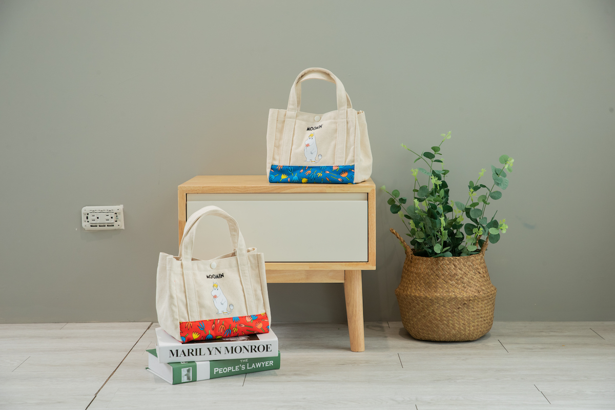 ▼花漾生活帆布袋(紅/藍):經典療癒的嚕嚕米搭配花漾布色點亮生活質感,便於攜帶的帆布包,去哪都好袋。