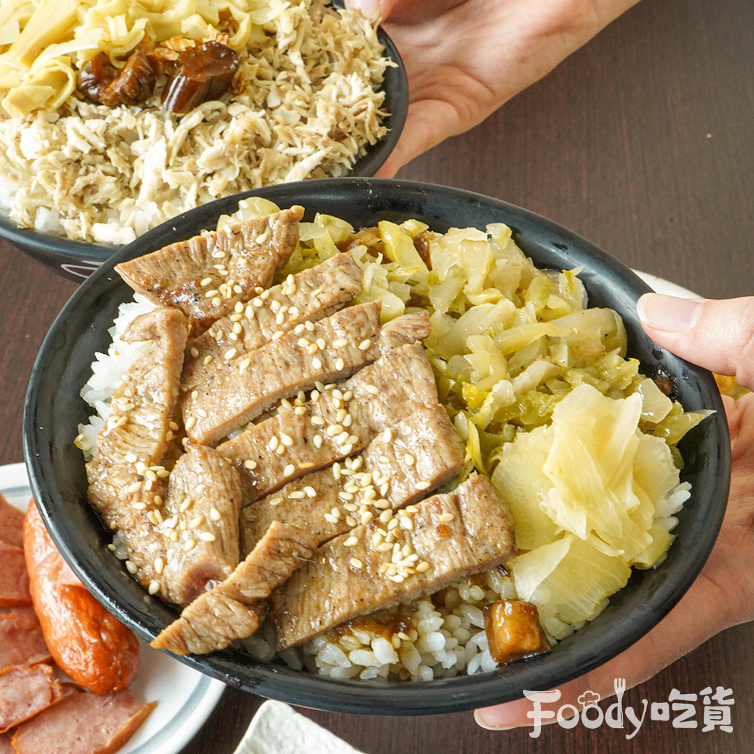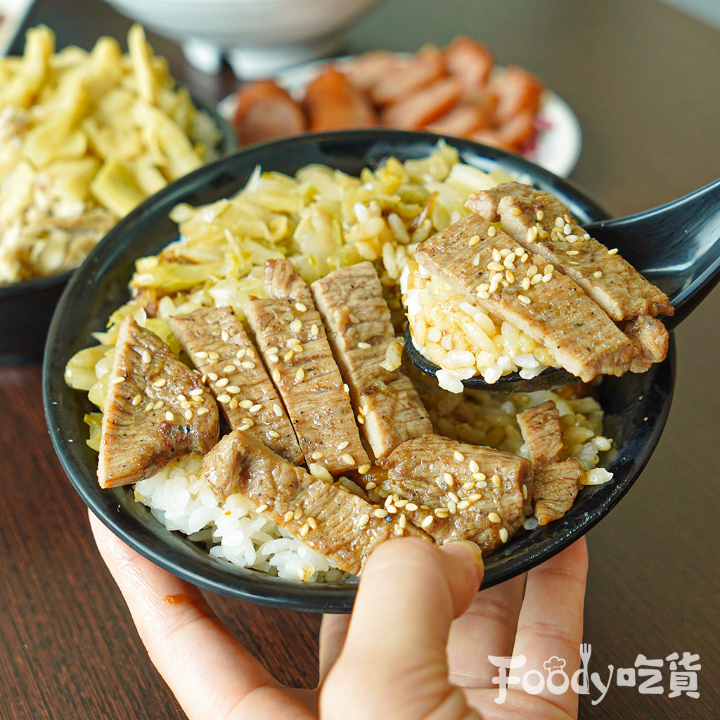 ▼另外這碗份量滿滿的燒肉飯,充分發揮台灣小吃大方又美味的霸氣,燒肉充滿濃濃醬香氣,淋上鹹香滷汁的白飯粒粒分明,搭配燒肉的十足肉感以及一旁酸甜解膩的「鹹菜」(酸菜)與嫩薑,一整碗丼飯吃完超滿足。
