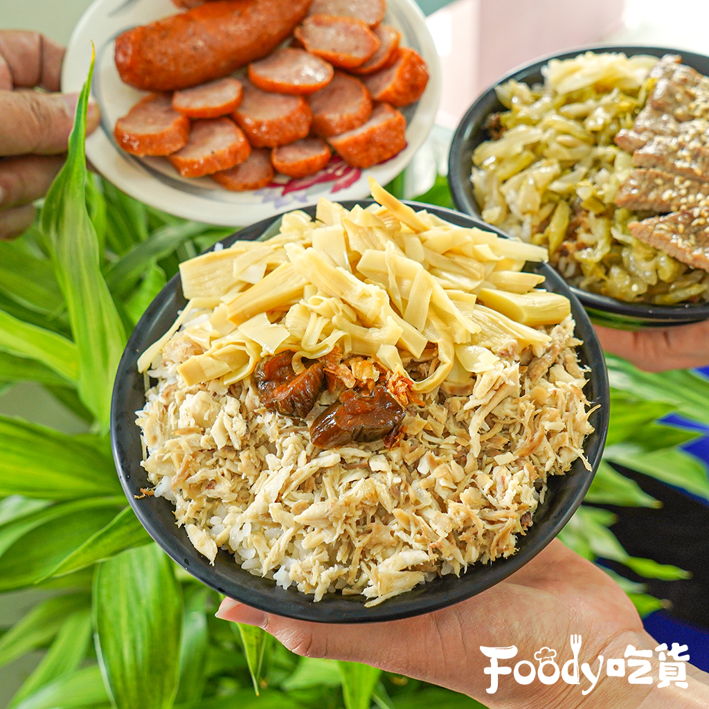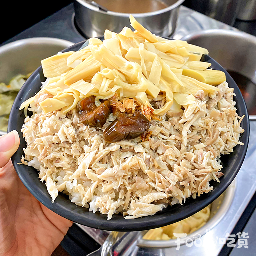 ▼還有這鋪滿滿的火雞肉飯,可別以為火雞肉飯是嘉義的專利,南台灣的火雞肉絲吃起來水嫩水嫩的不會柴,淋上火雞肉飯特有的醬汁一起享用,搭配清爽的筍乾、蔭瓜,最重要的是撒上一點油蔥提味,整碗飯各種元素搭配起來層次分明,卻又完美融合在一起,超對老饕們的胃口!