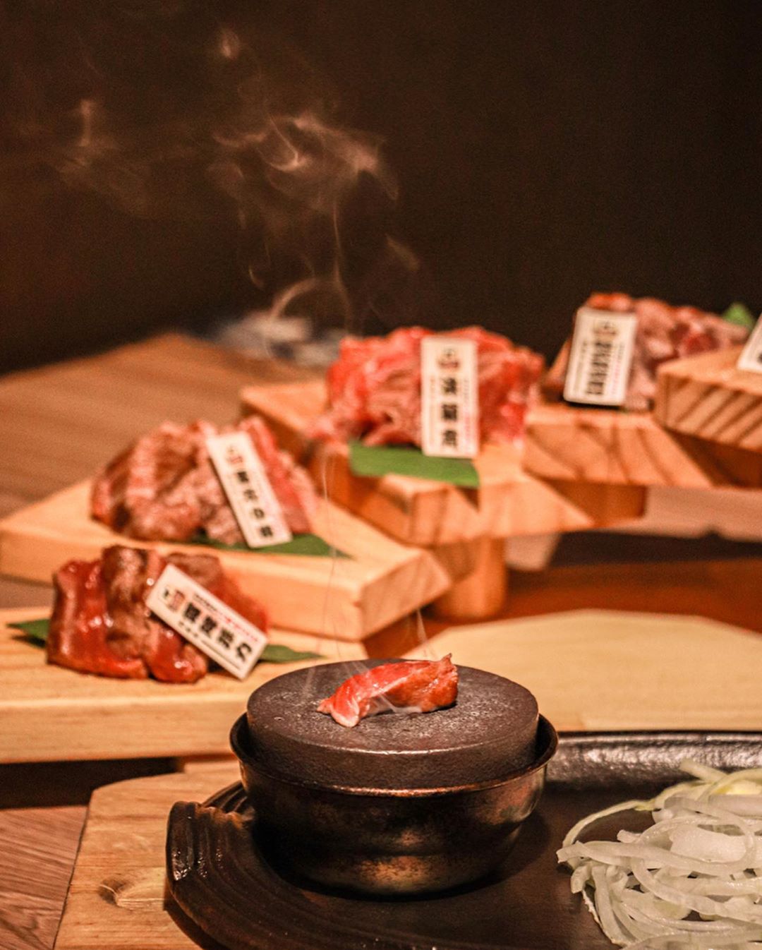 ▼如果你想來點品嘗到不一樣的牛排,可以選擇「極上牛劇場」,一次就能吃到五種不同部位的浮誇牛肉拼盤,有油花豐富的日本A4和牛肋眼、軟嫩的霜降以及帶有嚼勁的菲力牛排,每一款份量十足絕對讓你吃好吃滿!