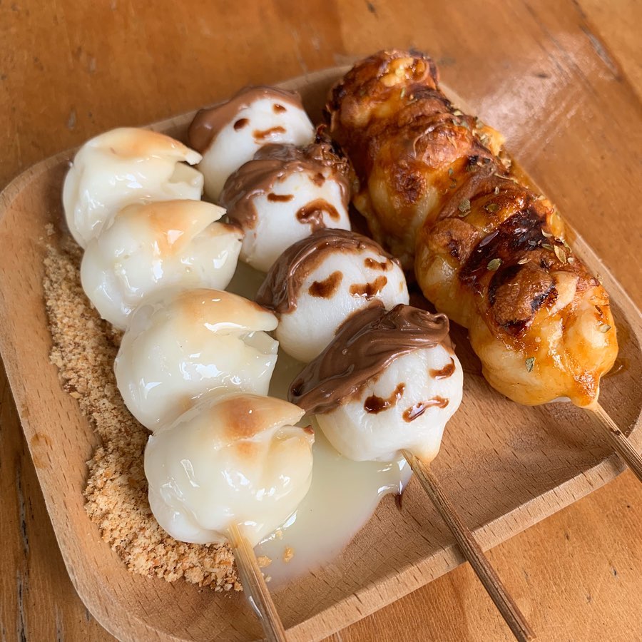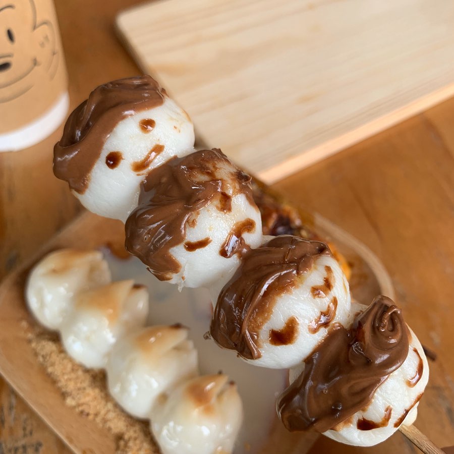 ▼焗太郎是糰子搭上濃郁的起司,而榛果糰子是巧克力配上榛果香氣,另一款甜心糰子則是常見的煉乳、花生粉搭配,愛吃糰子的人可以一次點三種口味,真的超滿足~