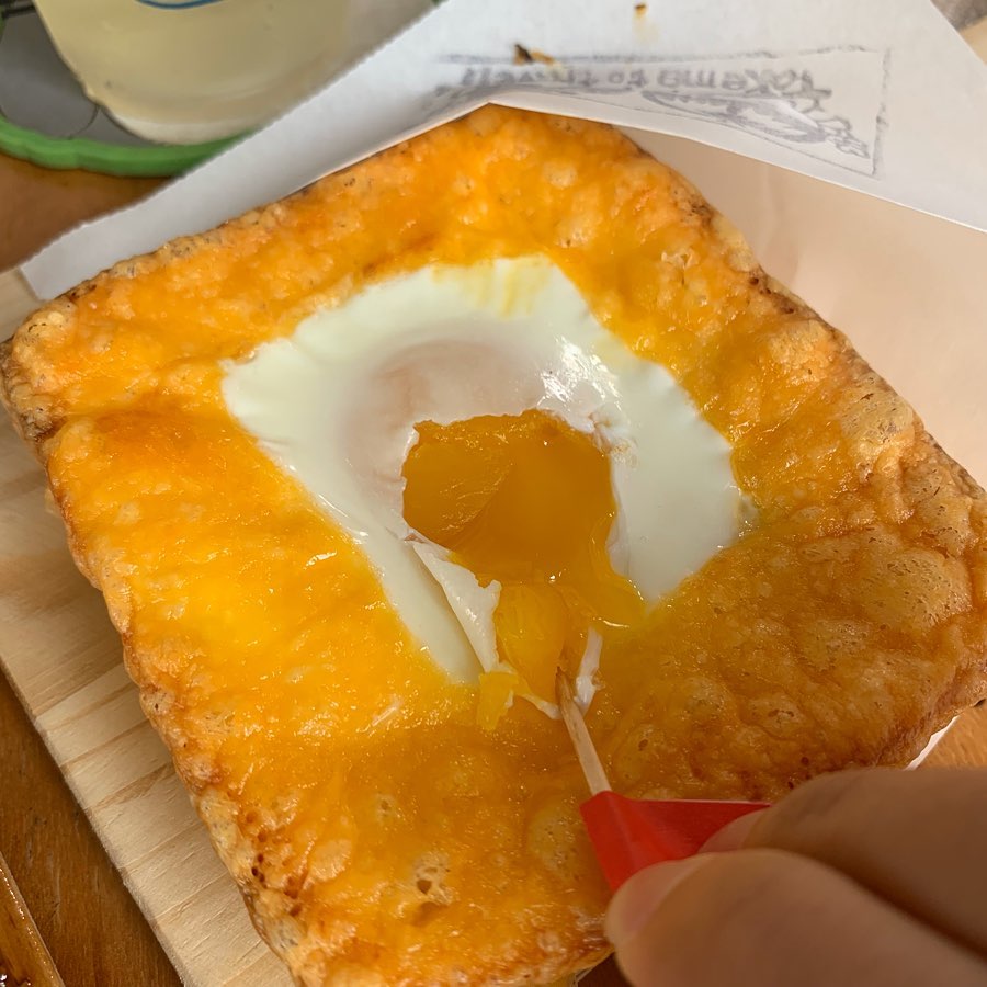 ▼這款「酥烤黃金起司蛋」也超級欠吃,半熟蛋加上焗烤起司真的是完美絕配,而且底層的厚片也不膩口,身為厚片控一定會超愛!另外,這裡還有販售印有維尼圖樣的吐司,真的太療癒啦!
