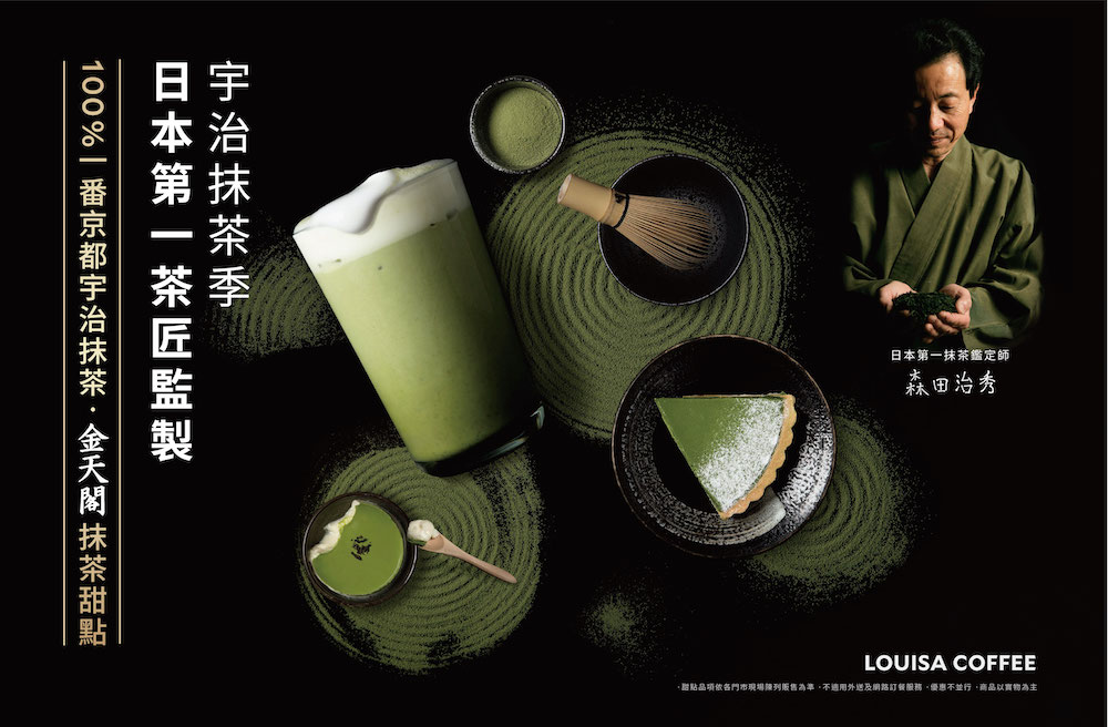 2020年04月02日抹茶控有福了!路易莎並於4/1日推出最日式純正的「宇治抹茶季」,抹茶系列飲品及甜點,業界首創邀請到日本第一茶匠 森田治秀擔任監製,為路易莎調製專屬獨家配方,嚴選正宗京都宇治100%一番抹茶極品,聯手推出全新系列「100%一番京都宇治抹茶飲品」、與甜點界抹茶LV的「金天閣抹茶甜點」,同時,陸續推出日本直送銷售NO.1的茶之環「滿月抹茶蛋糕」等伴手禮,使用一公斤五萬日圓的頂級「金天閣抹茶粉」,並且本著平價精品的精神,輕鬆品嚐到日本頂級道地的京都宇治抹茶濃郁美味!