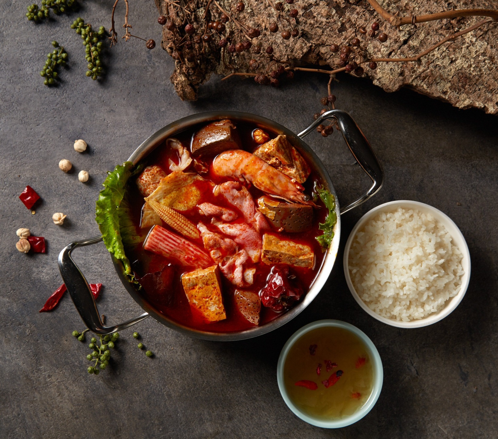 ▼「青花驕」麻辣鍋以頂級保鮮「重慶江津九葉青花椒」為主角,將湯頭辛香鮮麻提升至全新層次,並推出多項以青花椒入菜的獨家產品,帶來一股新流。