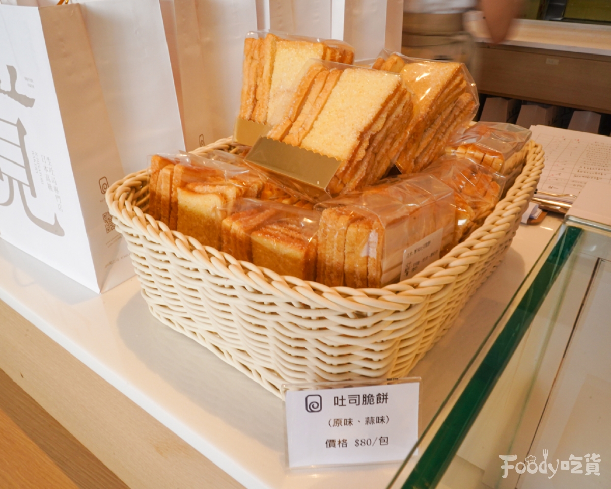 ▼另外店內現場還有販售「吐司脆餅」($80),分別有原味和蒜味,如果有來現場購買的話,也可以買回去品嚐看看喔~~