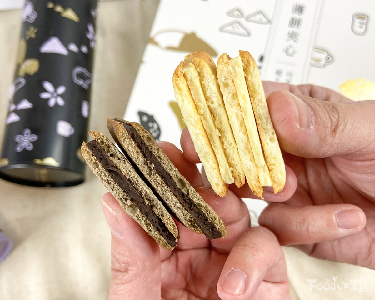 ▼而餅乾是伊莎貝爾經典招牌餅乾「薄餅夾心」,口味分別是夾入湖鹽起司的「起司戀人」,以及夾入濃郁巧克力的「巧克戀人」,一黑一白的組合,兩種口味都是網友們力推的招牌餅乾!