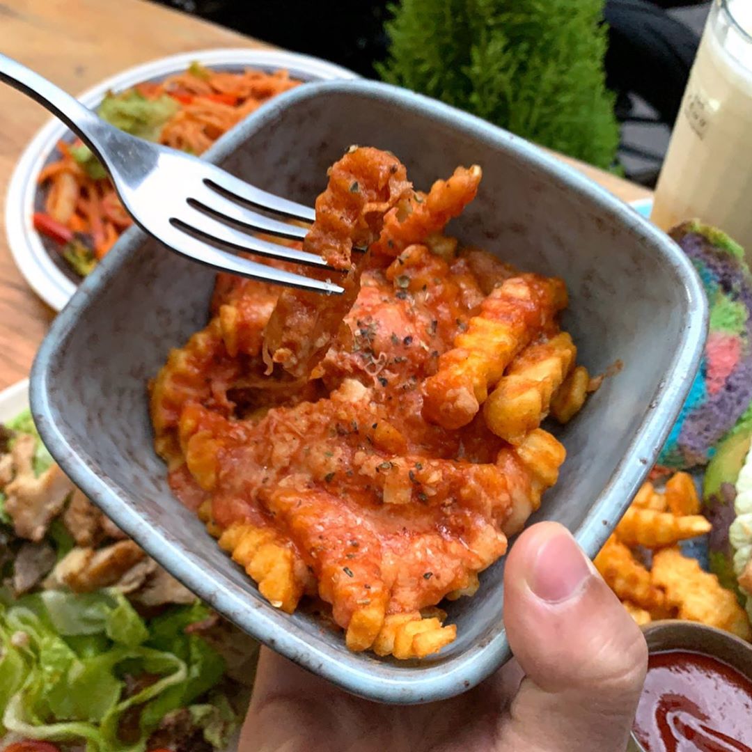 ▼義大利麵的表現也相當優秀,細直麵每條都有巴住醬汁,嚐起來不會過軟,旁邊的配料也是給得相當豐富。作為小點的薯條也是淋滿焗烤醬,偏粗的波浪狀口感一點都不馬虎!