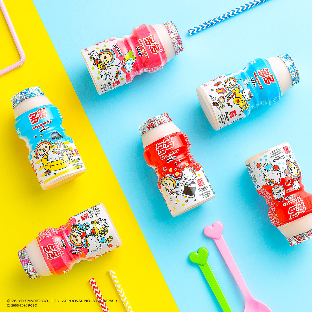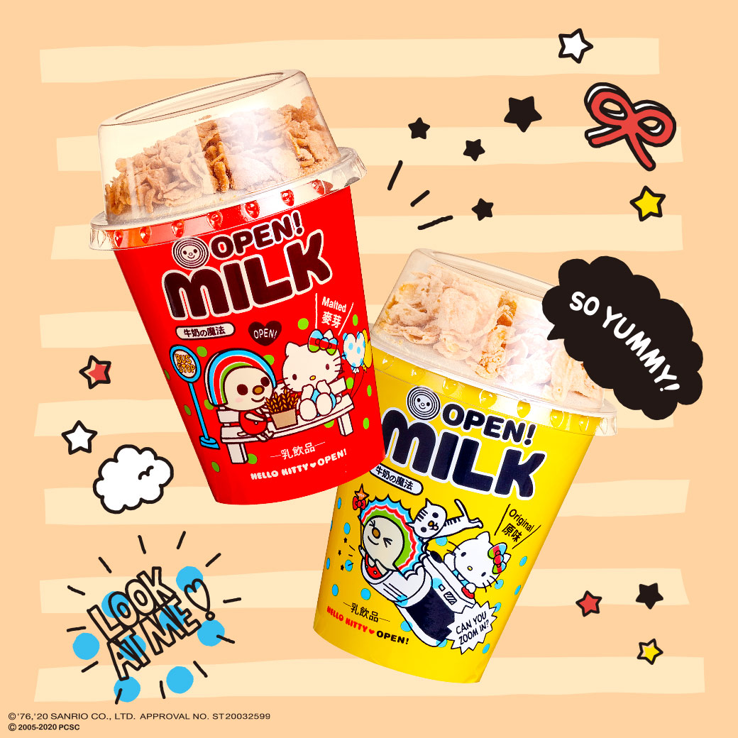 2020年04月20日Kitty控們注意啦!今年OPEN小將適逢15週年慶,特邀OPEN小將超萌友HELLO KITTY,一同展開「SWEET & FUN聯名甜點派對」活動,推出蘋果牛奶脆Q球、杯裝穀物乳飲以及多多活菌發酵乳,其中深受大小朋友喜愛的多多活菌發酵乳共有21款包裝,15款瓶蓋貼紙,粉絲們一定要全套蒐集,讓OPEN小將與HELLO KITTY萌翻你的小內心!