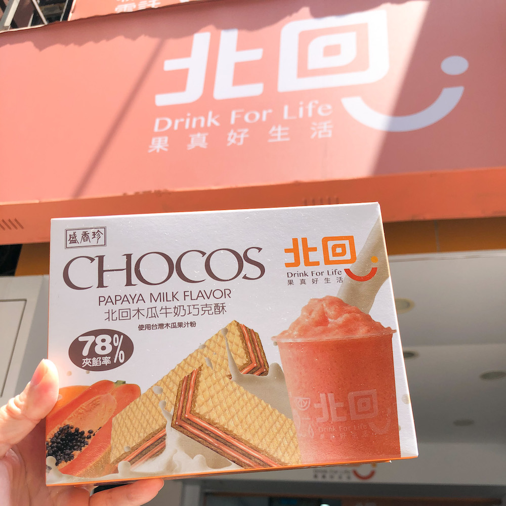 ▼「北回木瓜牛奶巧克酥」($52元),盛香珍與知名北回木瓜牛奶聯名獨家品,包裝截角優惠至北回可享每杯省5元,使用台灣木瓜果汁粉,餅體香濃可口,使用代可可脂白巧克力,增加風味!4/22~5/19專案架品項,2件8折,3件77折。