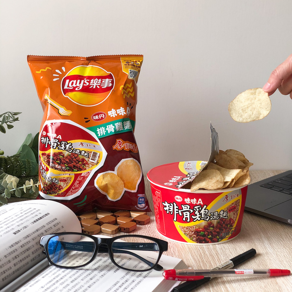 ▼樂事X味味A「排骨雞麵口味洋芋片」($45元),經典味味A排骨酥泡麵,和樂事洋芋片碰出新滋味~4/22~5/19,2件8折3件77折。