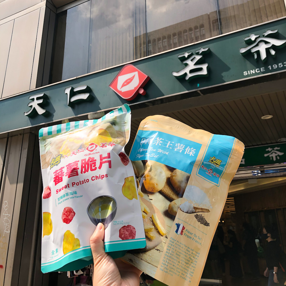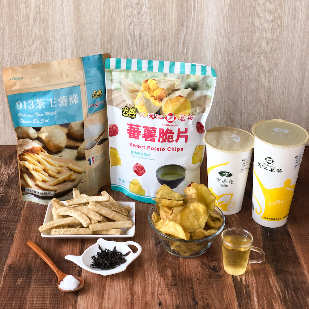 ▼超強跨界天仁茗茶推出兩款零食,「卡滋蕃薯脆片-甘梅綠茶風味」($45元)招牌道地綠茶加入酸甜梅子,嚴選57黃金地瓜,酥脆美味;「卡滋茶王薯條-913鹽之花風味」($59元)暢銷茶款913茶王變身茶薯條,加入法國頂級鹽之花口感更鮮美!