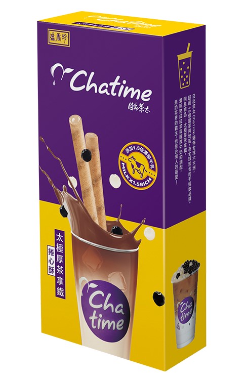▼「日出茶太太極厚茶拿鐵捲心酥」($40元),盛香珍與日出茶太聯名太極厚茶拿鐵捲心酥,日出茶太銷售第一名:太極厚茶拿鐵,使用台灣茶粉添加奶粉增加香氣!4/22~5/19專案架品項,2件8折,3件77折。