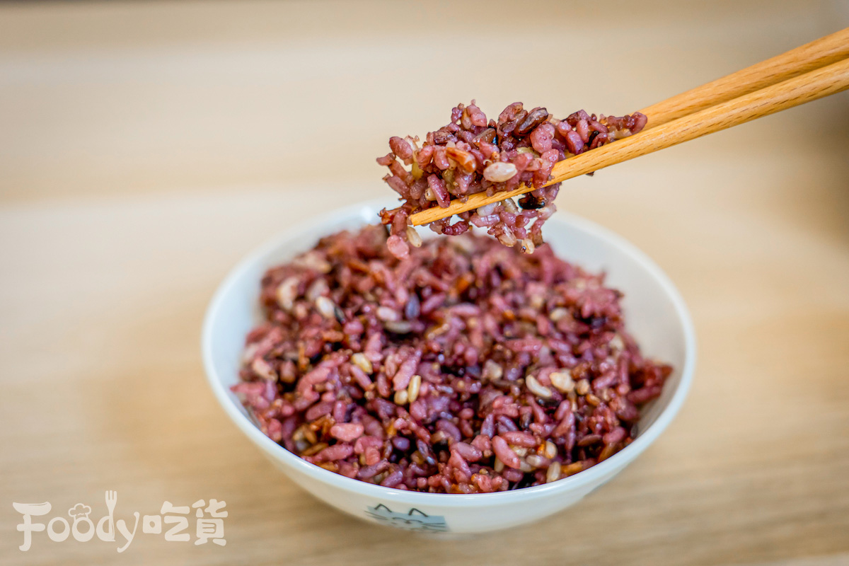 ▼飯炊好後香氣非常濃重,跟一般的白飯香不同,五鑽米的香氣中帶有一絲稻穀的味道,讓人馬上能聯想到大自然的氣息。因為花青素的關係,整碗飯會變成像紫米一樣黑中帶紅的顏色,但是並不會醜醜的,而是能夠感受到光澤。