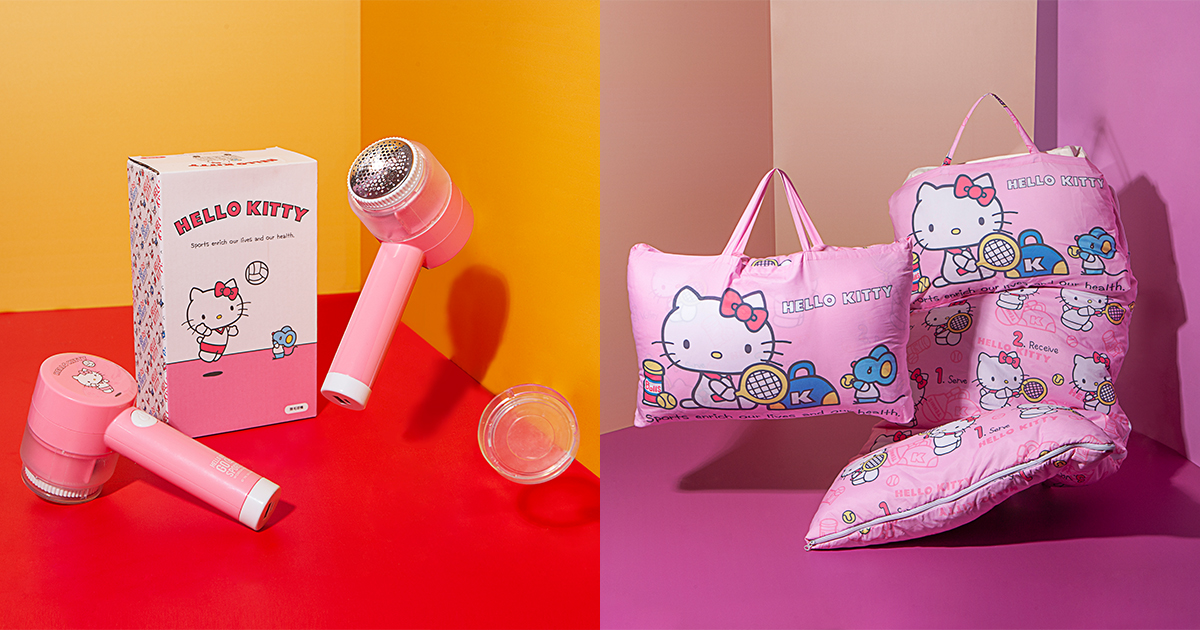 ▼還有粉紅色系的排球、籃球、網球和田徑Kitty,可愛的小睡袋、餐具、涼被和小家電,每一款都好想收啊!