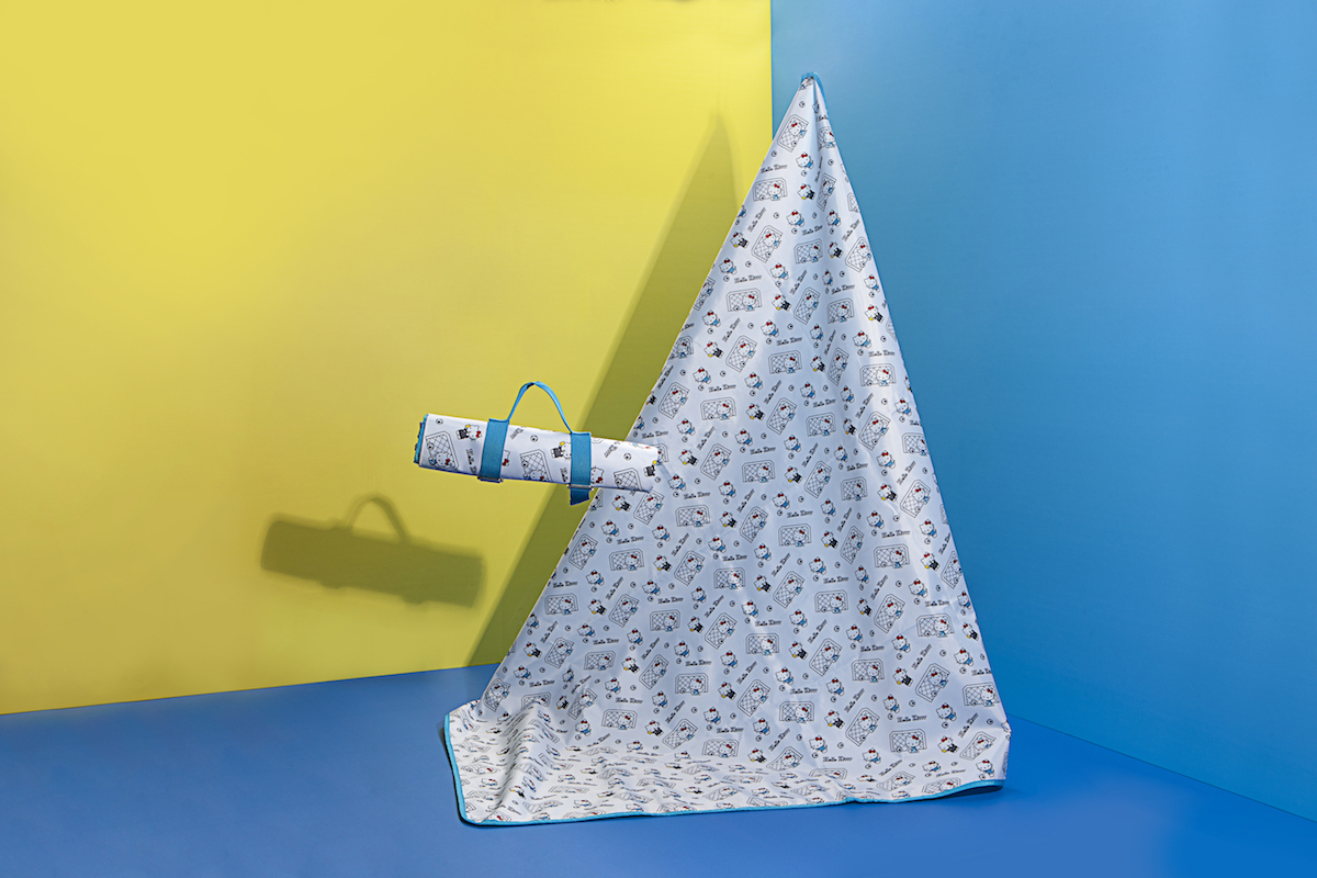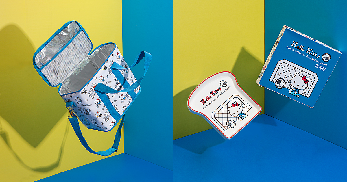 ▼藍色系的足球Kitty則有餐盤、餐袋和野餐墊等一系列野餐必備品,陽光+草地+Kitty超療癒!