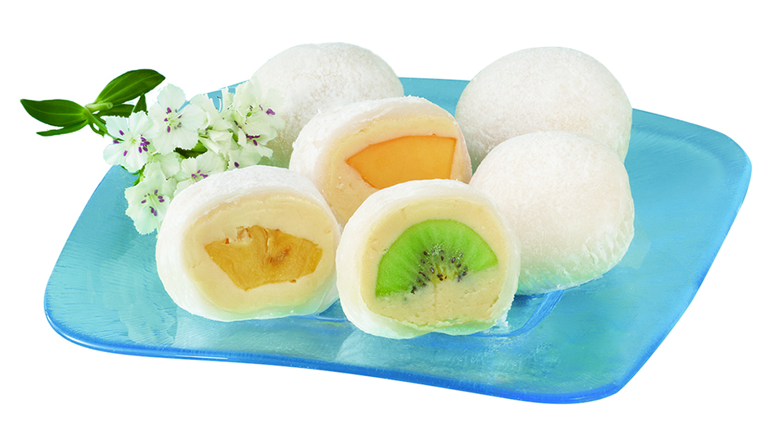 ▼「咖芳綜合水果大福$599元」Q軟的麻糬皮豐富多層次,包入新鮮水果與特別研發清爽綠豆餡替代鮮奶油,細緻滑順無油膩感。