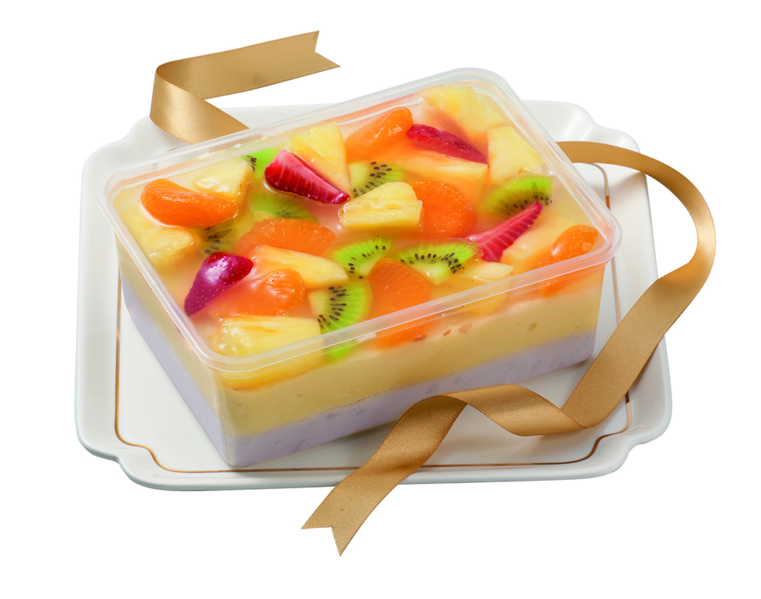 ▼首先要來介紹的就是這款「振頤軒熱帶水果寶盒$699元」,延續熱銷的珠寶盒系列,將草莓、鳳梨、奇異果及蜜柑融合在一起的鮮果凍,搭配重量及大甲芋泥與戚風蛋糕,酸甜滋味超消暑。