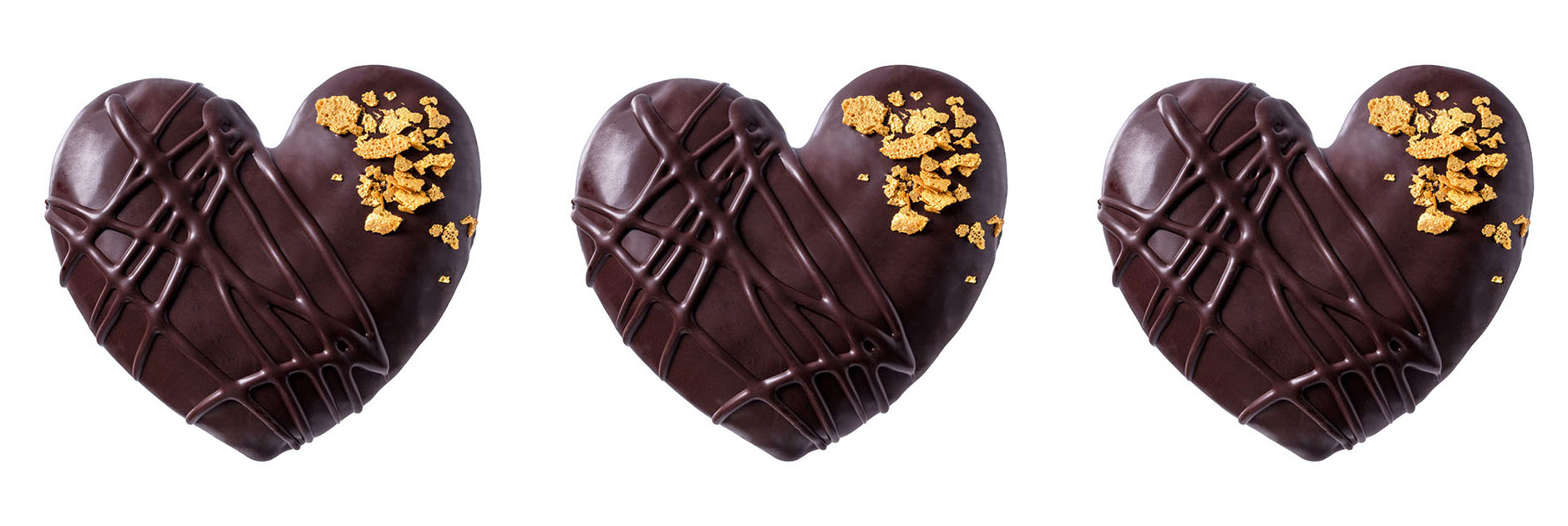 ▼「可可甜心」($50)外層沾裹巧克力醬,搭配香濃巧克力卡士達內餡,再撒上金色雪花片,就完成一顆滿滿濃郁真心。微奢華的視覺感,一口咬下吃到滿滿巧克力的香醇口感。