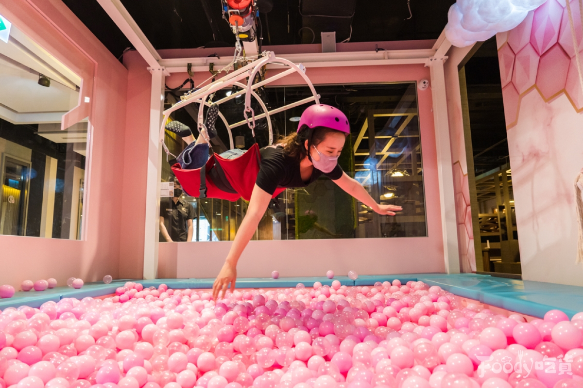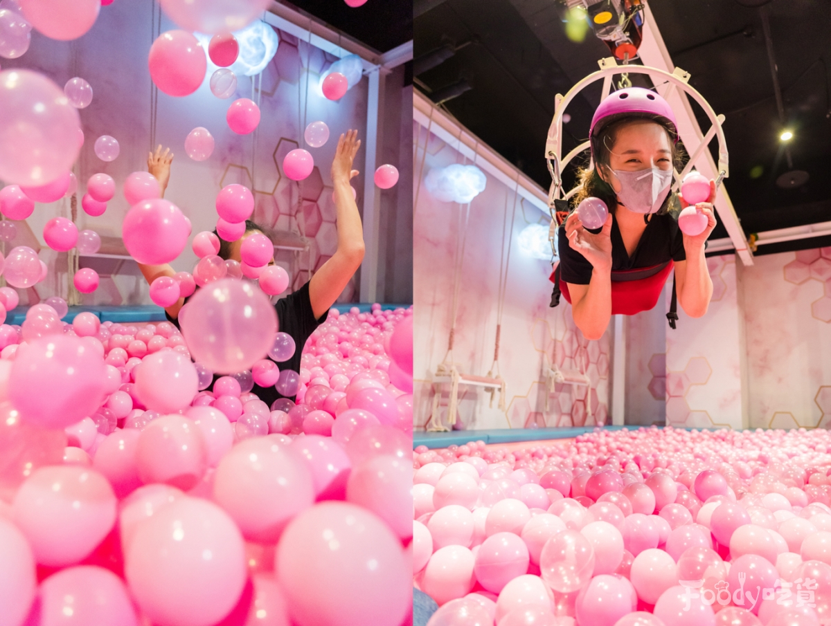 ▼「圓砌鴛鴦升降鍋物」還有一個最大的特色,就是這座網美聖地「粉色夢幻球池」,不只可以在這裡拍拍美照,還有結合超有趣的「真人夾娃娃機」!