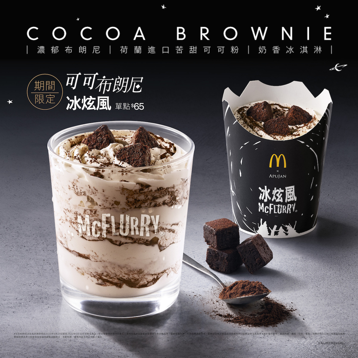 滿滿的可可香氣+巧克力布朗尼,搭配麥當勞經典冰淇淋,這麼美味的冰炫風怪不得過去推出後會造成熱潮啊!這次終於又再次回歸,大家千萬不要錯過啦!