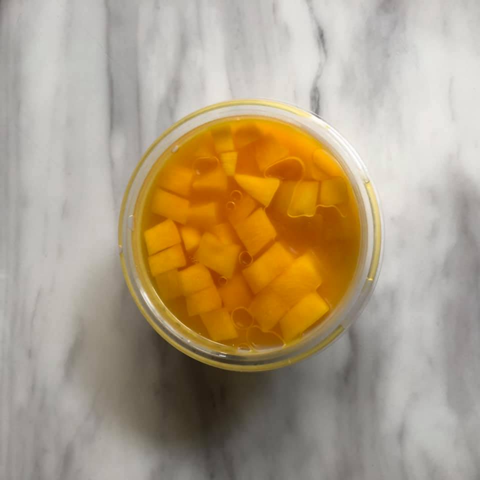 ▼看看上層這滿滿的芒果丁+果醬,一整片黃色光用看的就有種莫名爽感,不用想就知道一定好吃!