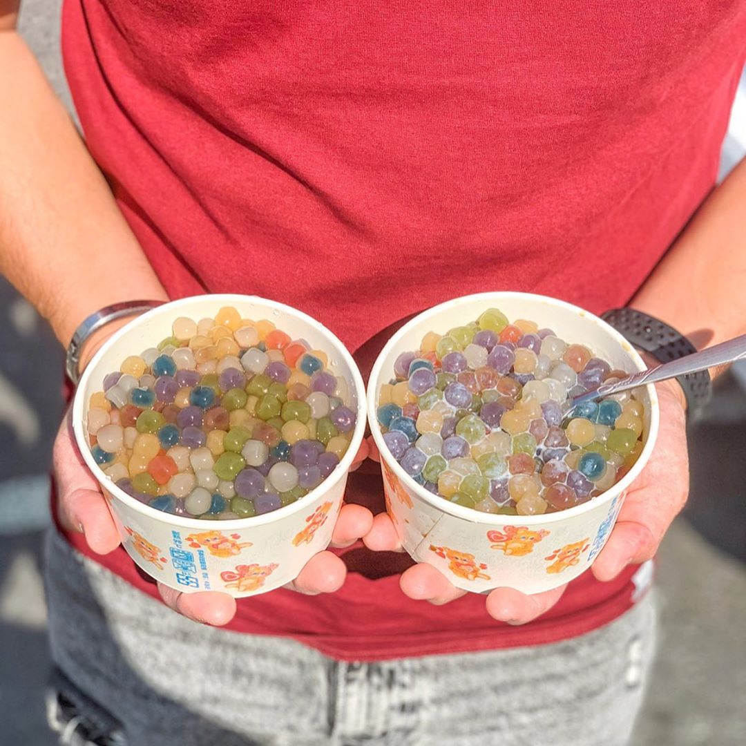 ▼位在屏東縣萬丹鄉的「五個寶行動餐車」,販售著近期在IG上超熱門的「彩色蔬果粉圓剉冰」,五顏六色的粉圓都是店家用天然食材做出來的手作粉圓,讓顧客可以安心享用甜點~