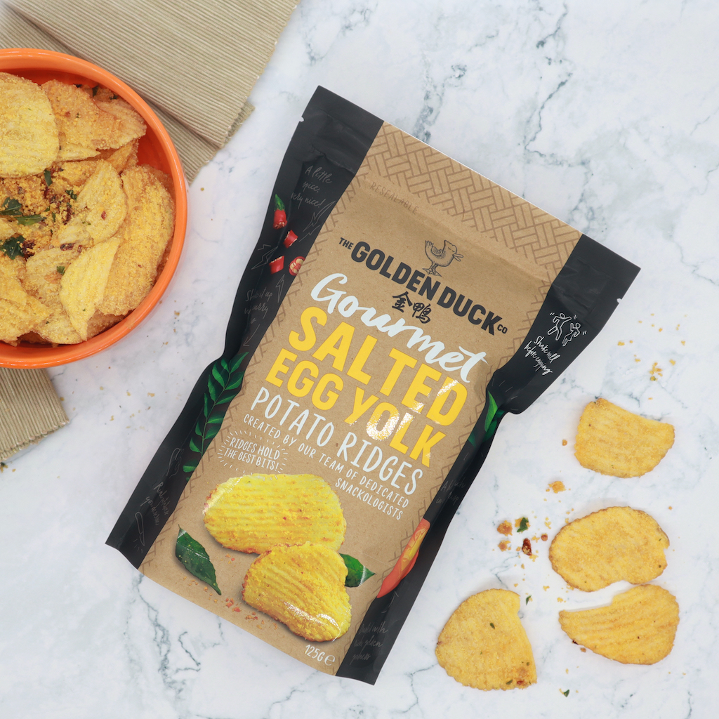 ▼鹹蛋黃熱潮在台炫風不止,新加坡鹹蛋黃零食領導品牌-金鴨 ( The Golden Duck) 在台灣推出新口味「鹹蛋黃波浪洋芋片」。新口味將於5月1日在金鴨官網、蝦皮商城搶先販售,微風超市5月5日起開始販賣,單包售價 NT199。